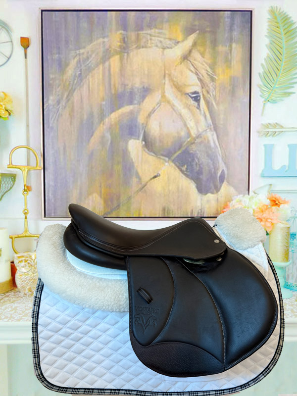 This saddle’s short, forward flap is designed to accommodate a rider with a slightly longer femur, or someone who rides with a shorter stirrup or is doing larger fences. Featuring Voltaire’s second skin sweat flap, this saddle provides a super close contact feel and offers a versatile fit on a variety of horses or ponies!