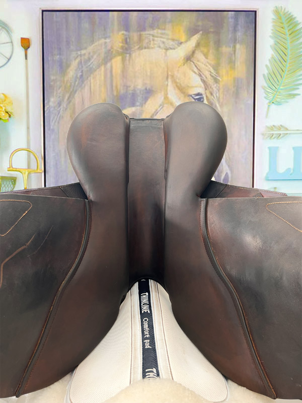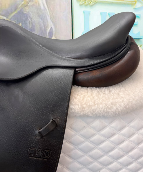 The Se02 is the ideal seat for a rider who likes to sink into their saddle or who finds they can get ahead of their horse or a bit tipped forward in other saddles. It’s semi deep shape supports the rider beautifully to provide ultimate security without interfering. The semi straight flap is ideal for a shorter- average height rider or someone looking for a flap that helps keep your leg balanced underneath your seat. Front and back blocks help cradle your leg both on the flat and over fences and CWD’s lusciously supple leather provides ultimate grip and stability!