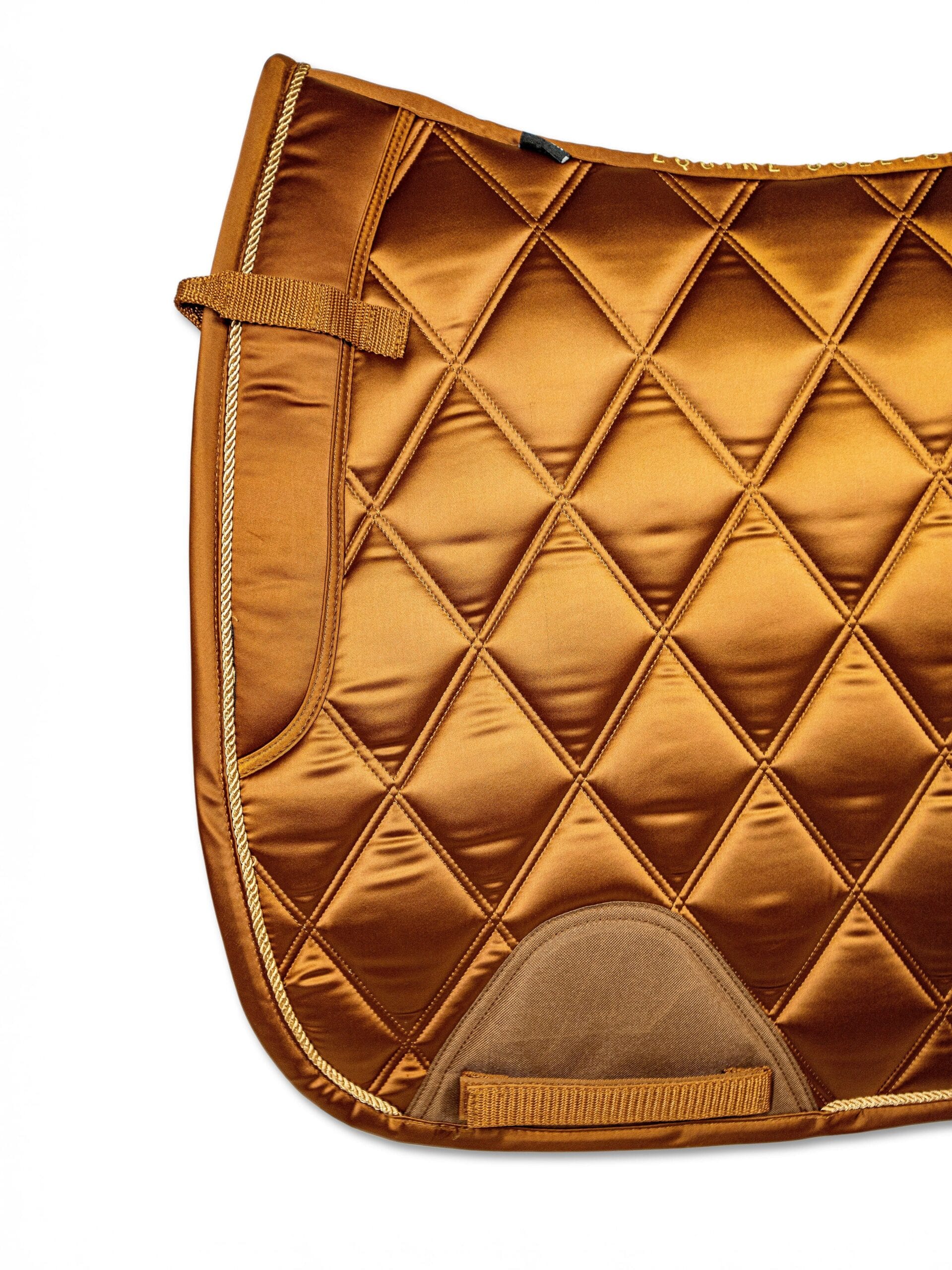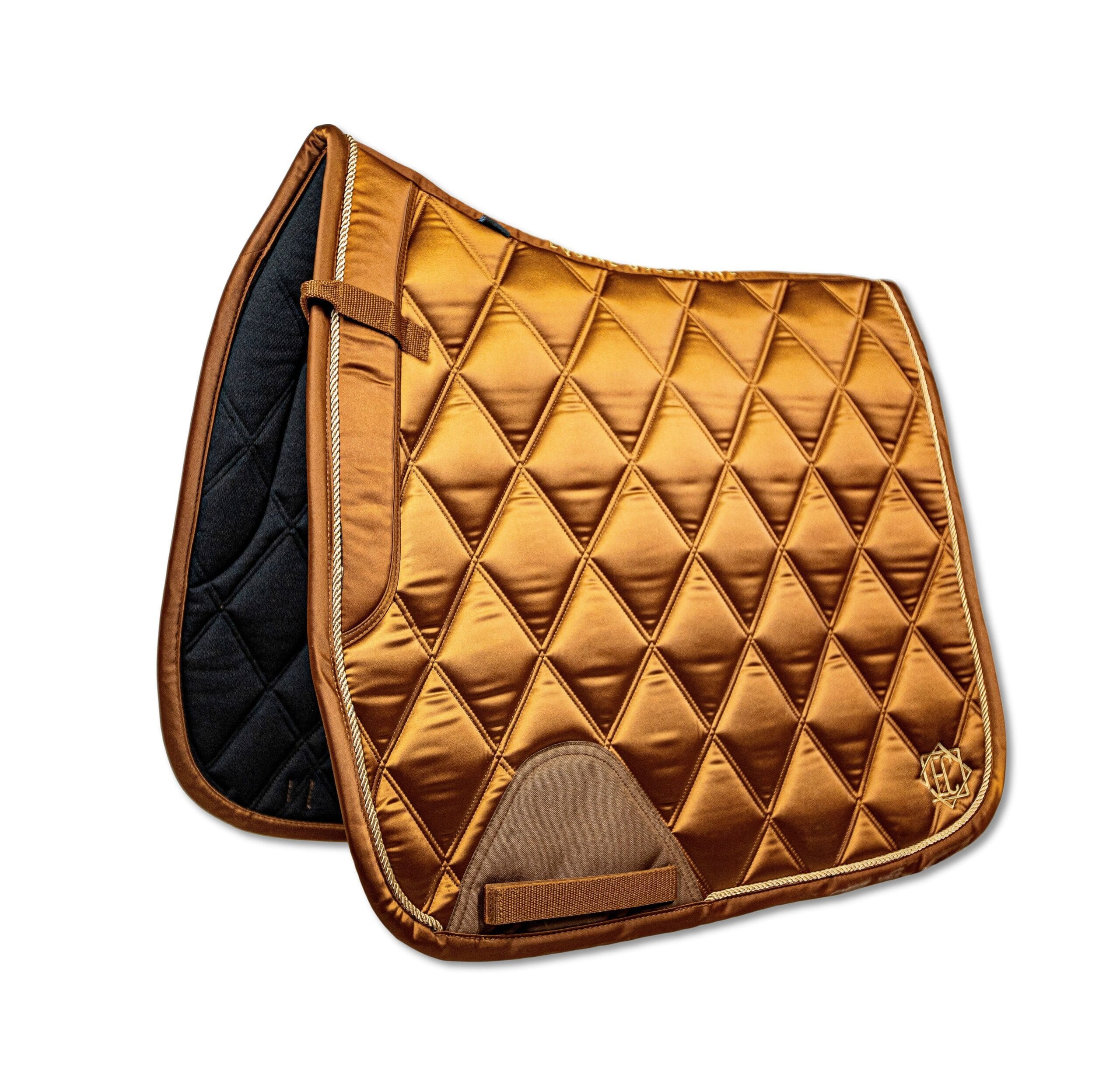 Luxurious feeling pads are made with the horse’s comfort in mind Smooth satin fabric outer layer Breathable and moisture wicking black mesh material lining Anatomically designed shape with wither clearance Wither cushion and D-ring straps to keep pad securely in place and reduce friction Girth area has added protective material to prevent wear and no cord piping to reduce pressure point for the horse Designed in Canada Bundle with other items of the same color for a classy head-to-toe look.
