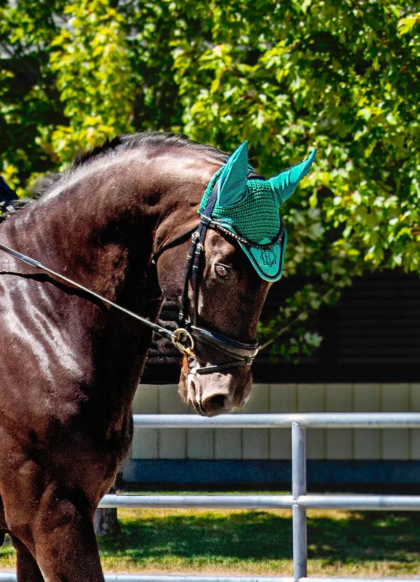 High quality fly veil with vibrant color Soft crocheted color-matched material Elastic Lycra fitted ears Embroidered logo Fly/bug protection to reduce distractions Designed in Canada Bundle with other items of the same color for a classy head-to-toe look.
