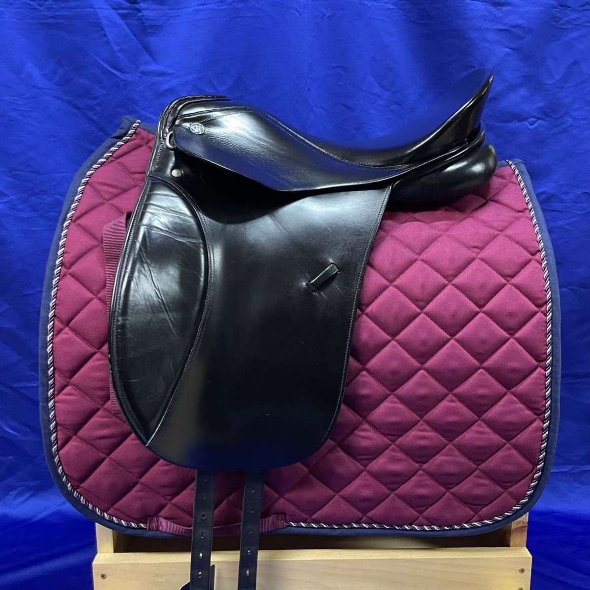Lovely Kieffer Dressage saddle with an anatomic seat to put the rider in the correct position. This saddle also has medium sized knee rolls under the flap and a standard wool panel with a tree adjustable by a fitter.