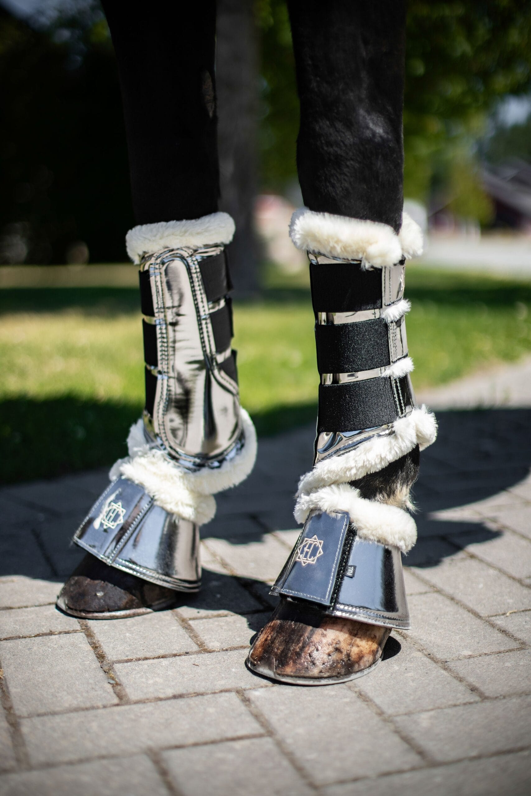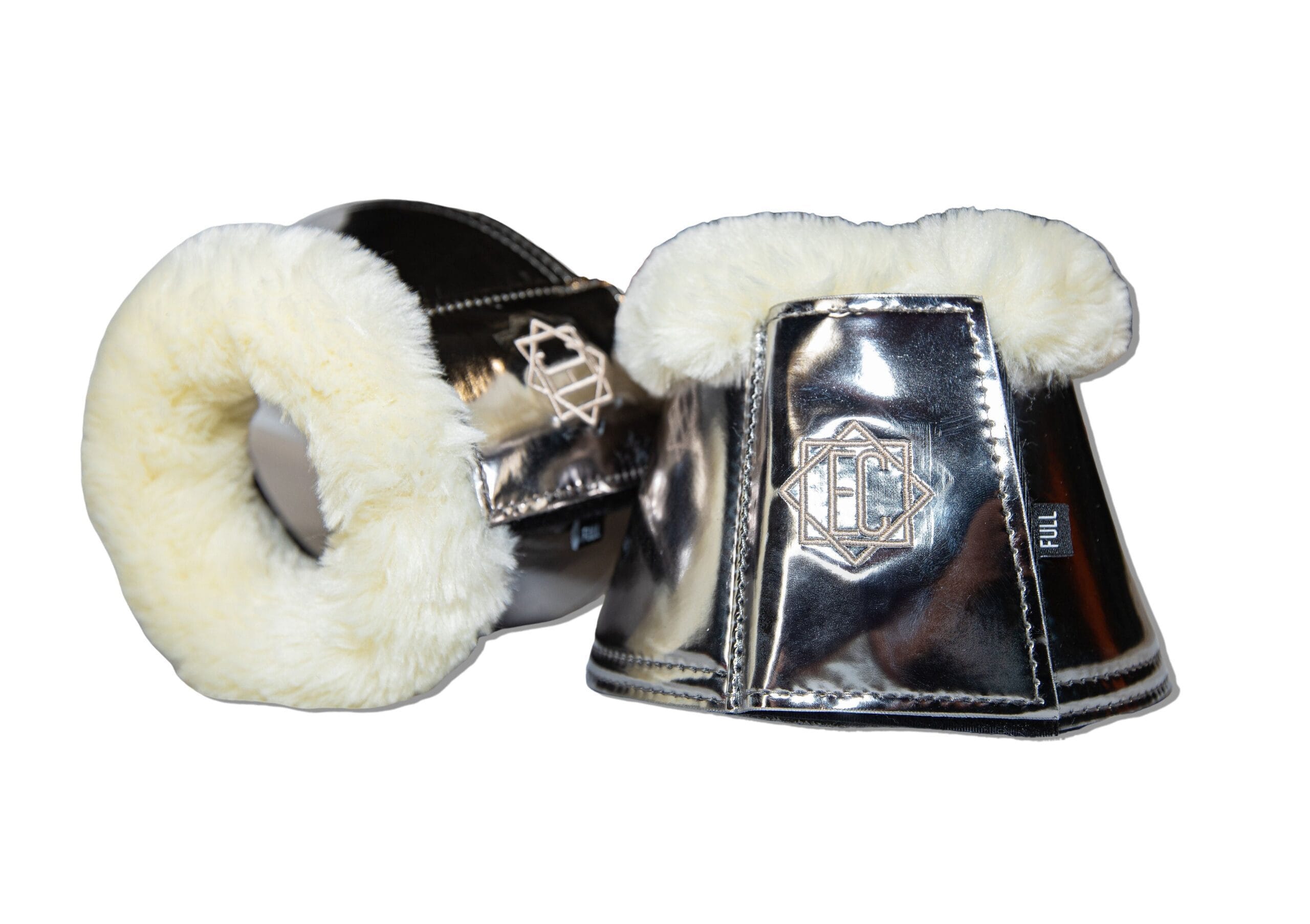 Protection and comfort while looking stylish Shiny patent leather exterior Soft fleece around top rim Neoprene lining on inside Double locking Velcro straps keeps them safely in place Designed in Canada Bundle with other items of the same color for a classy head-to-toe look.