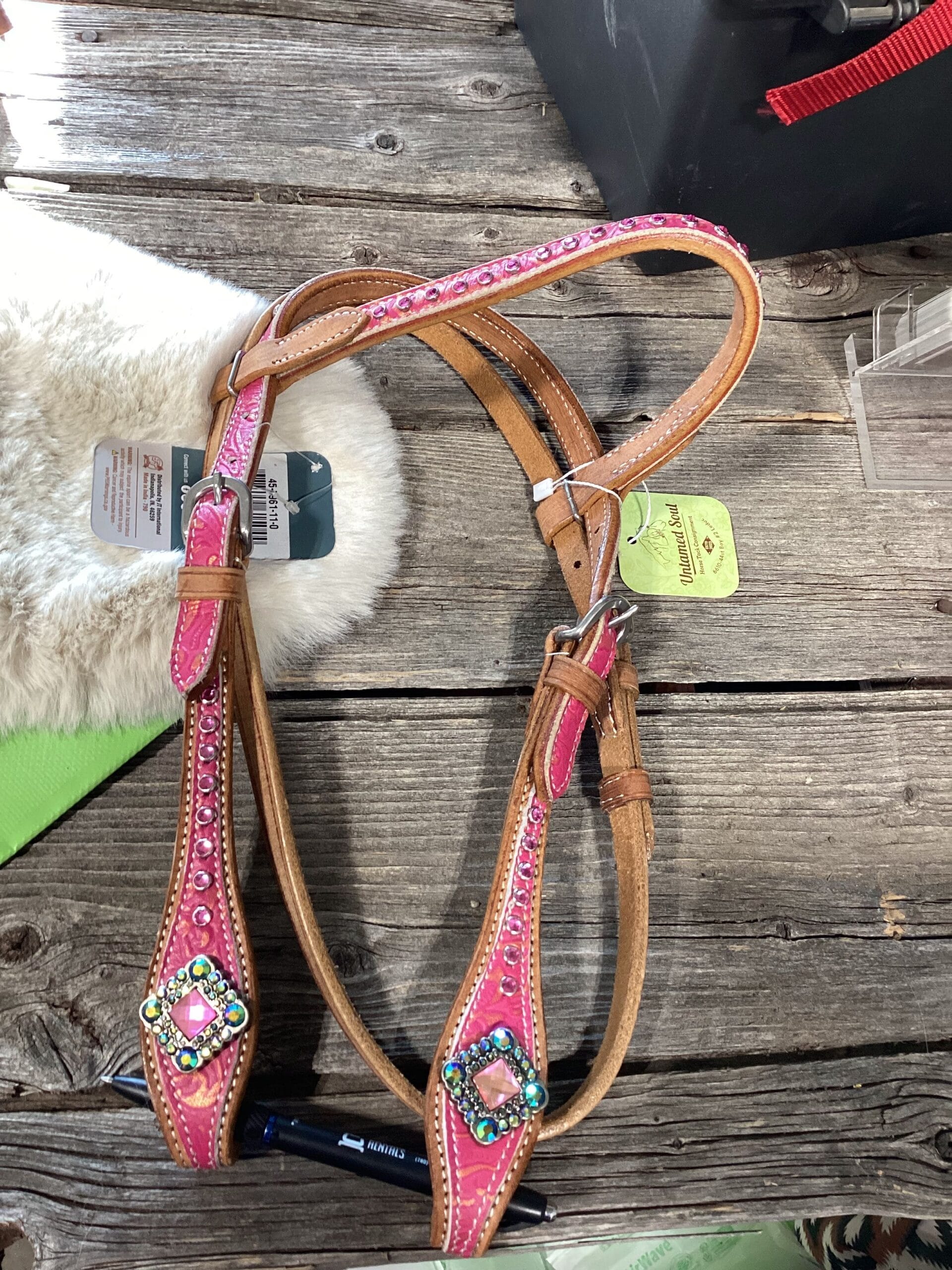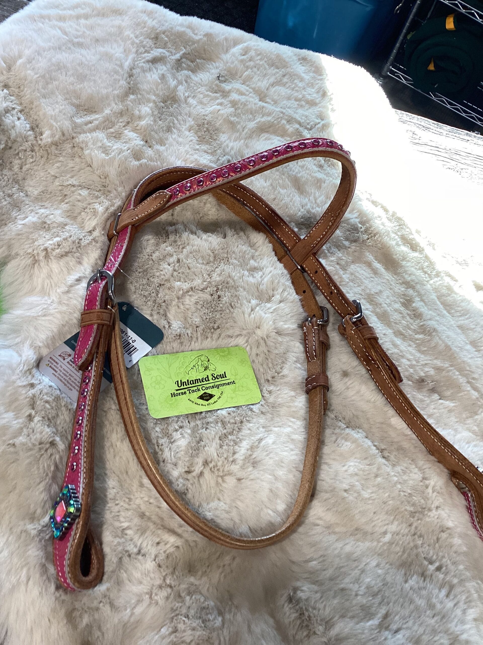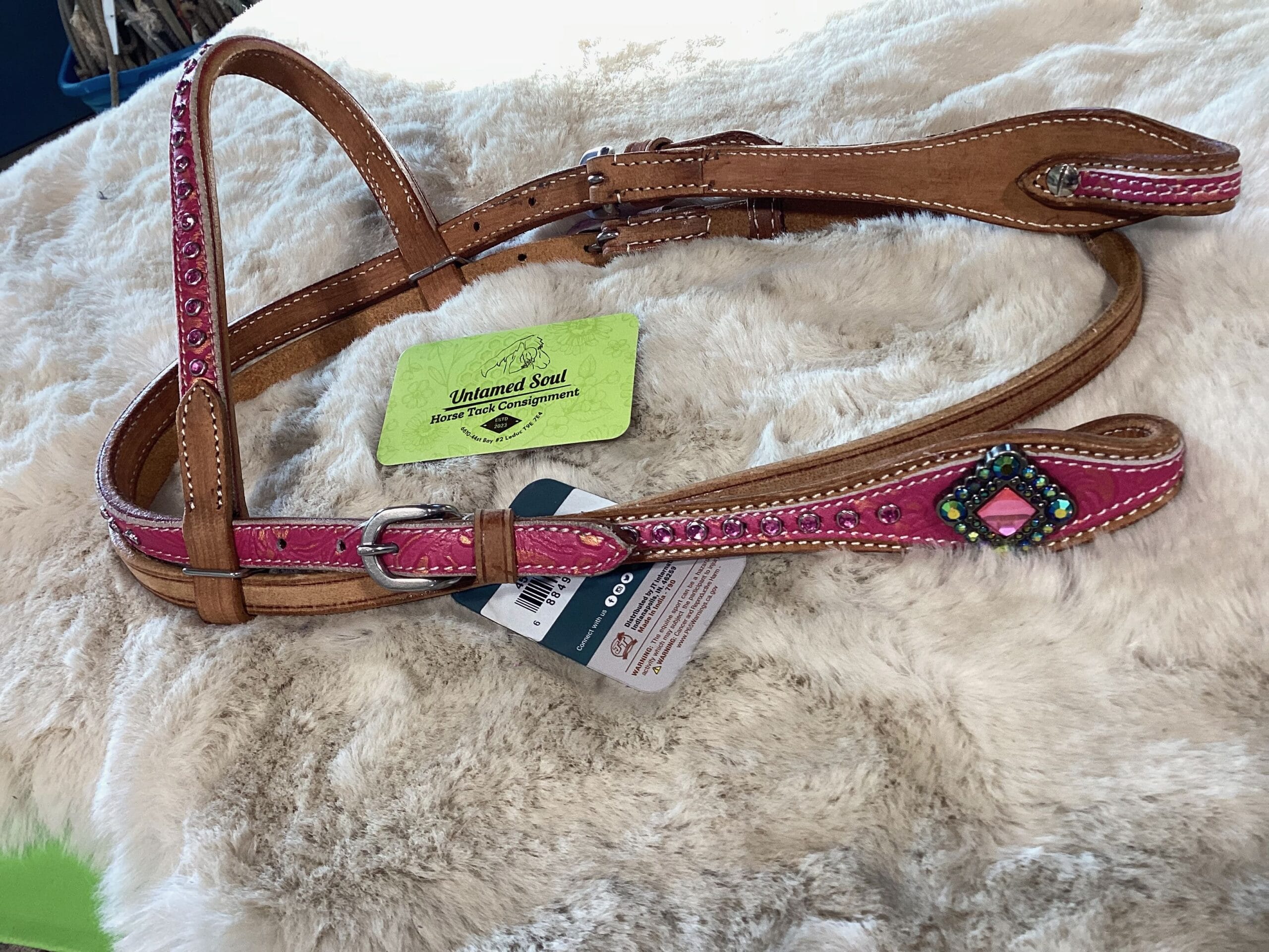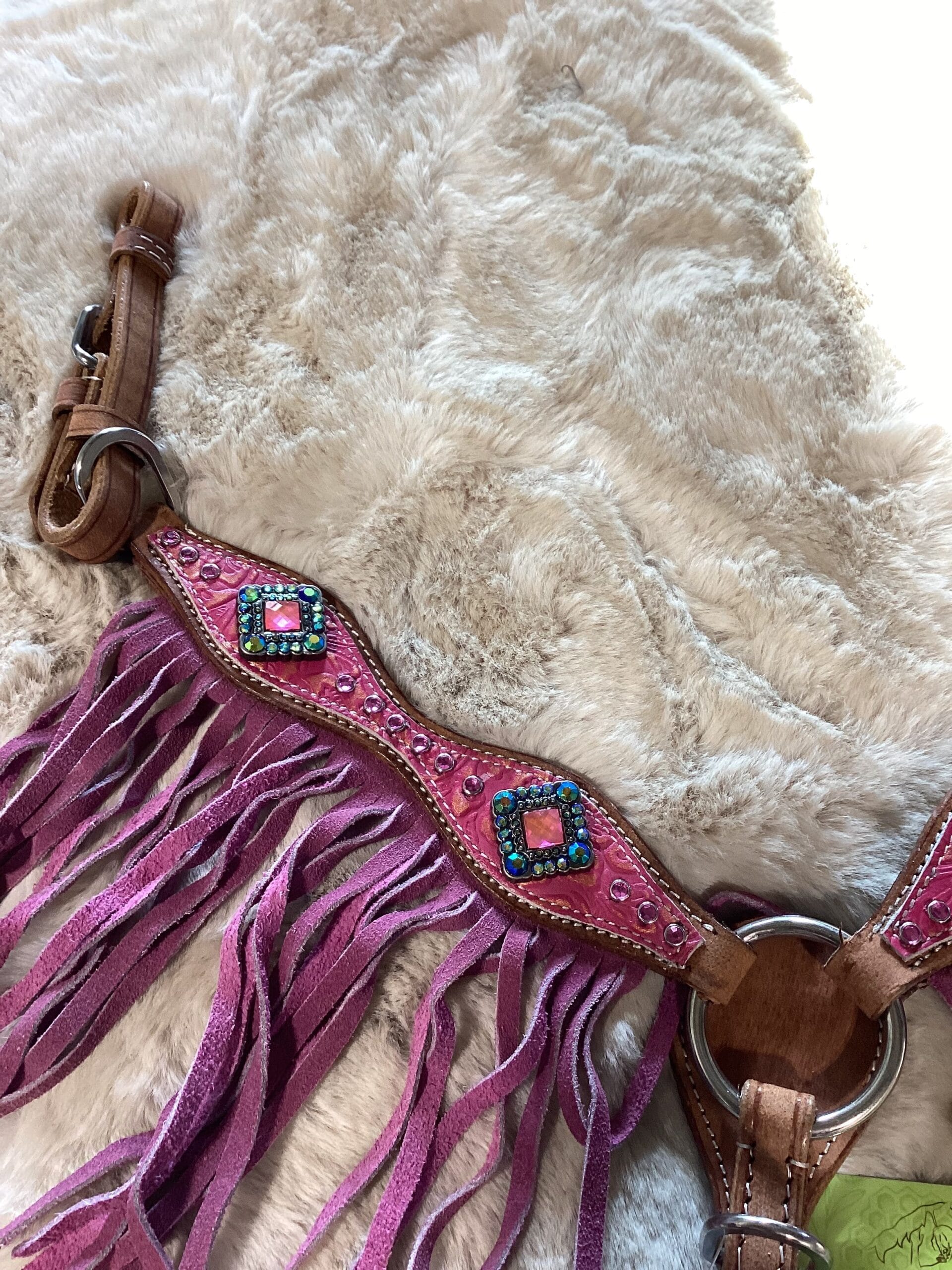 Western Headstall & Breast Collar Pink *NEW*Conchos with iridescent Swarovski crystals