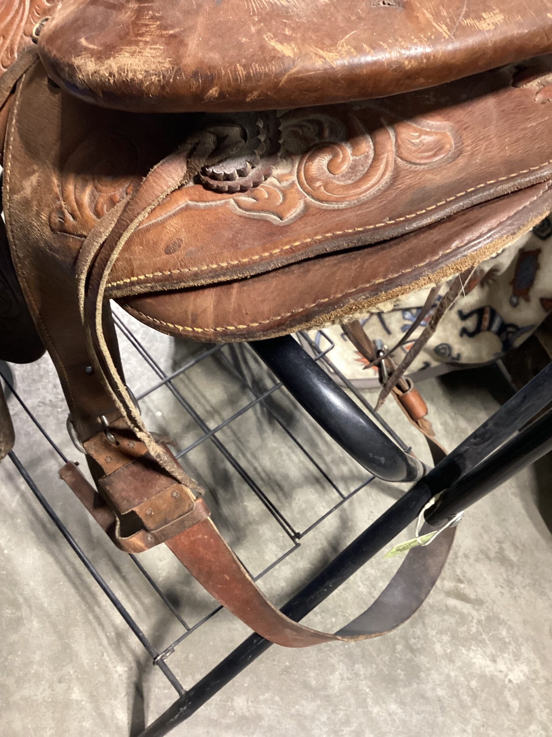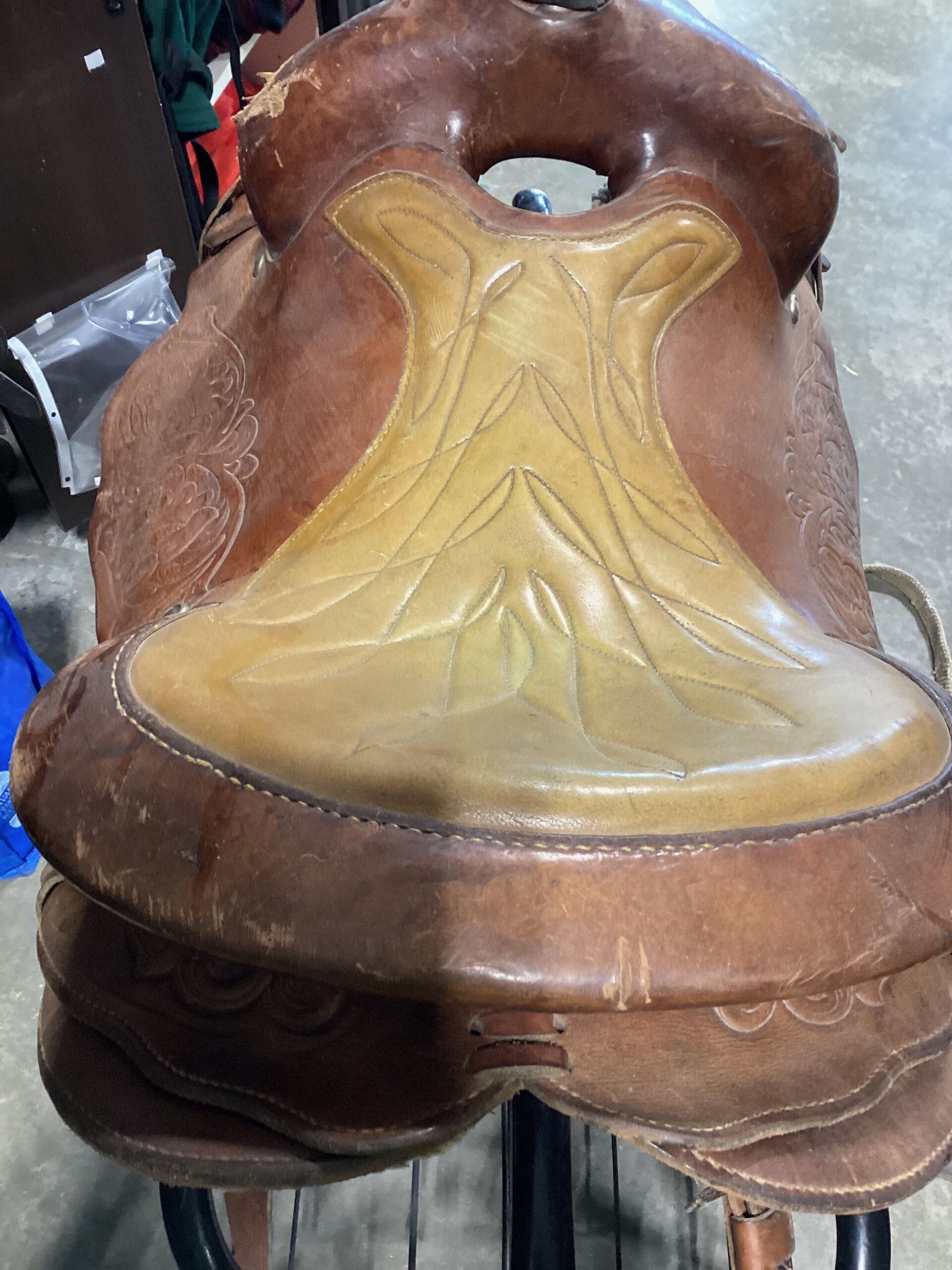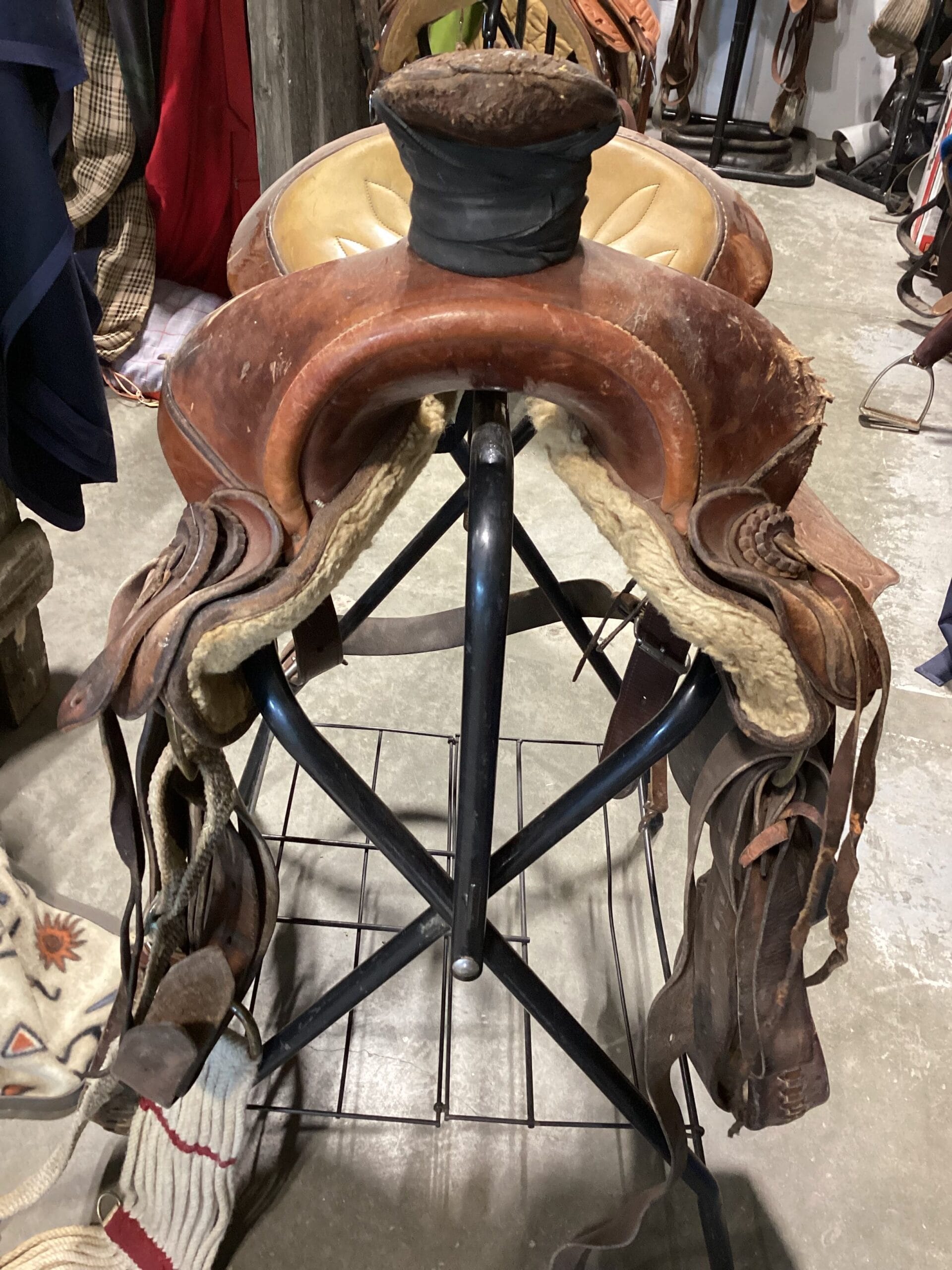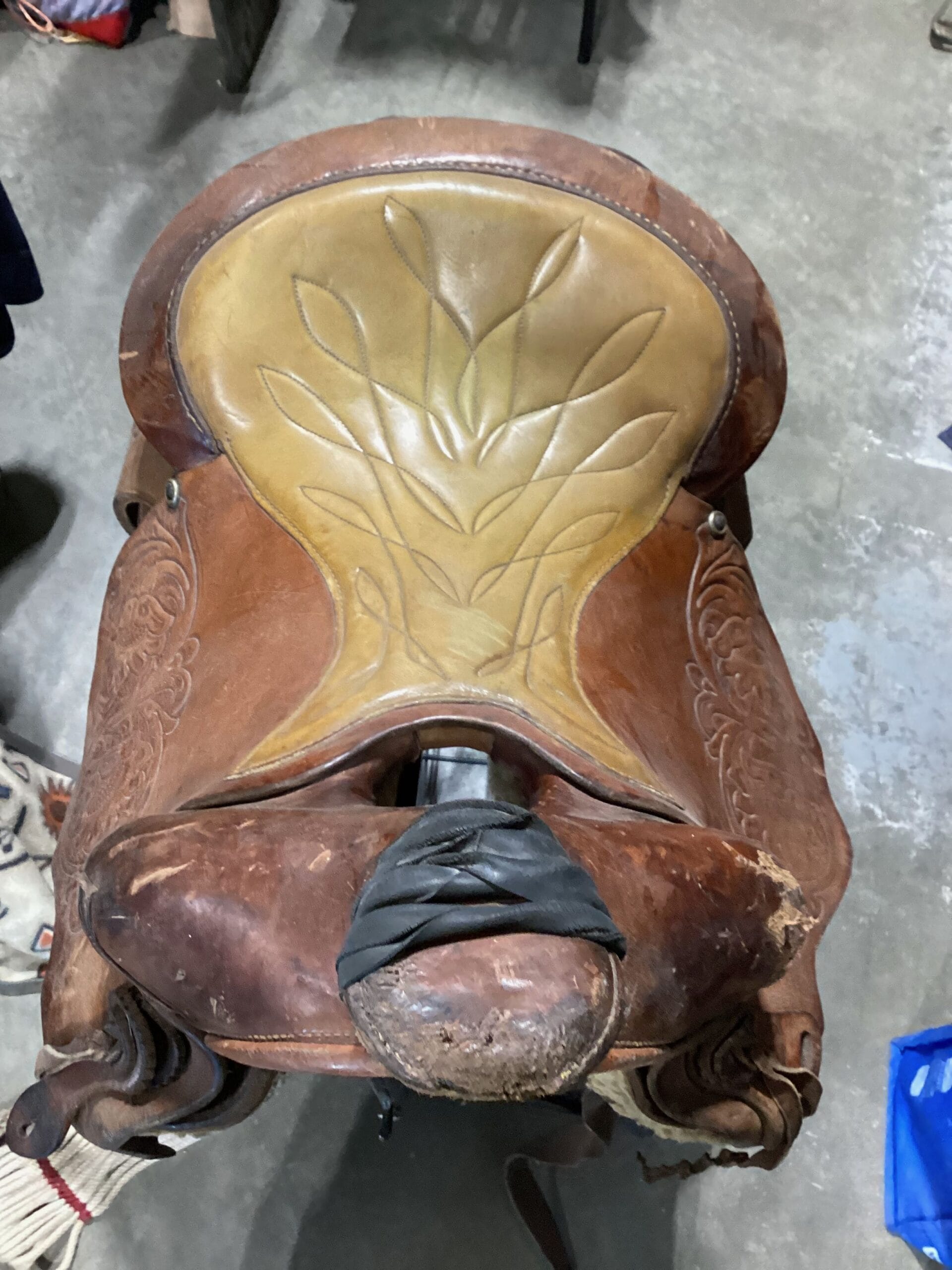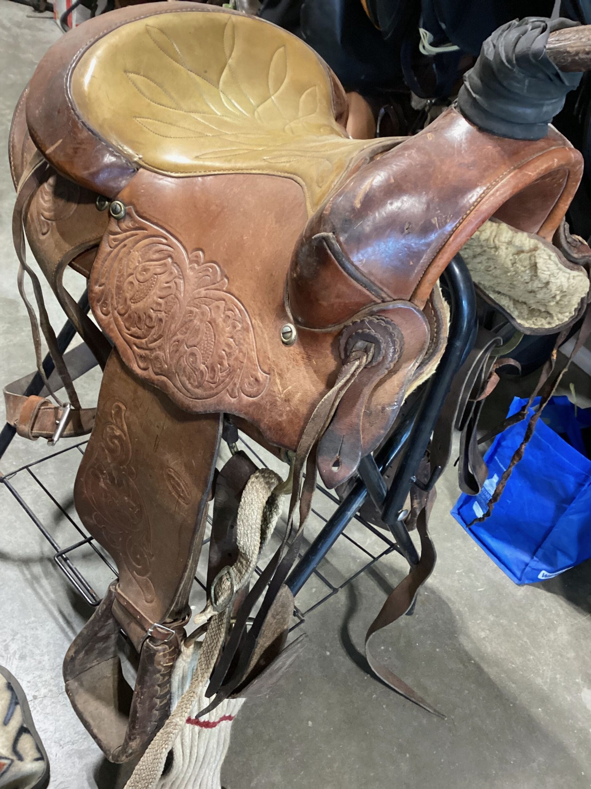 Rope cinch and back cinch included Seat 15″ Gullet 7″ Skirt 24″ Older saddle seems like a roping saddle a bigger horn.