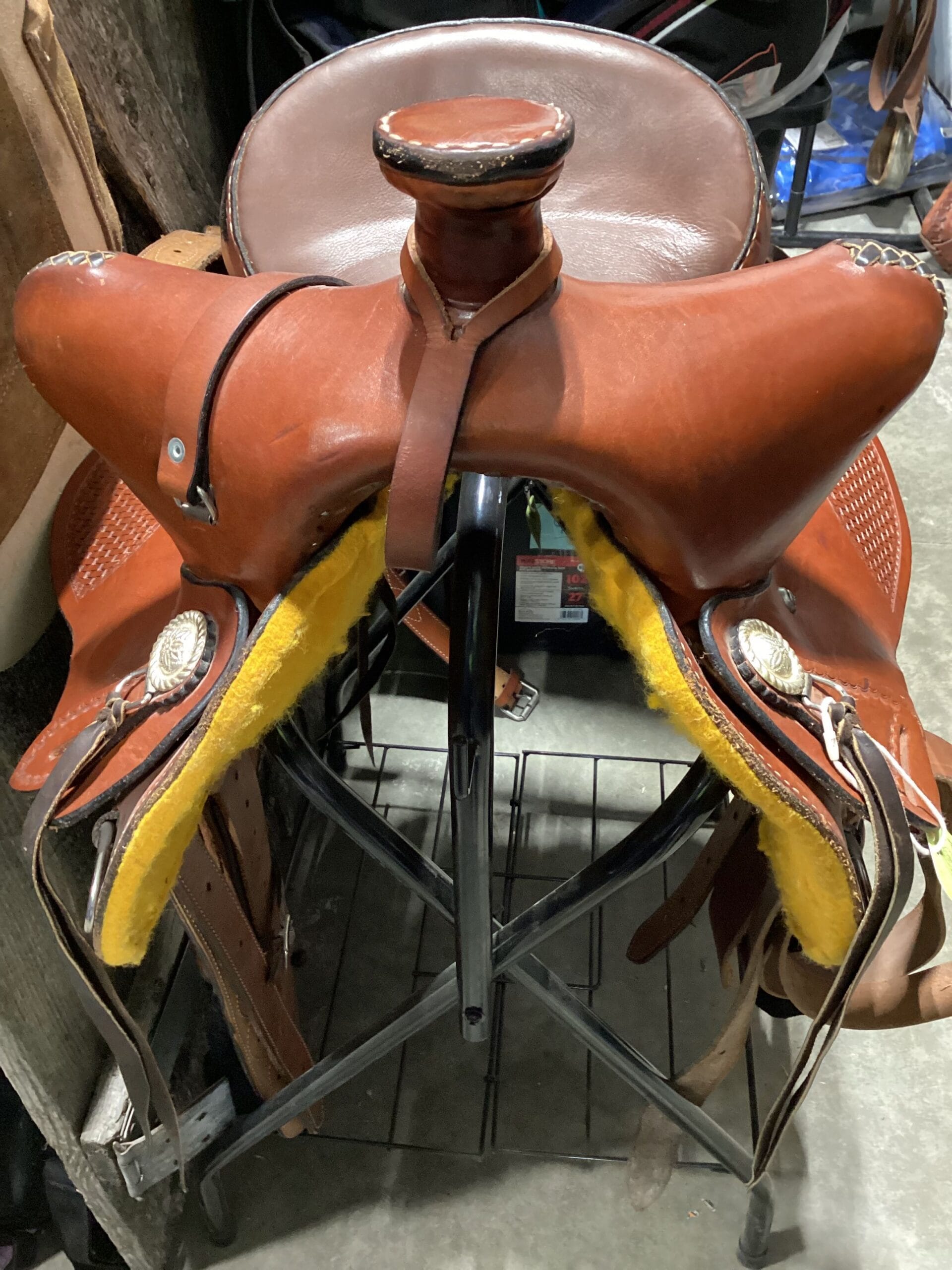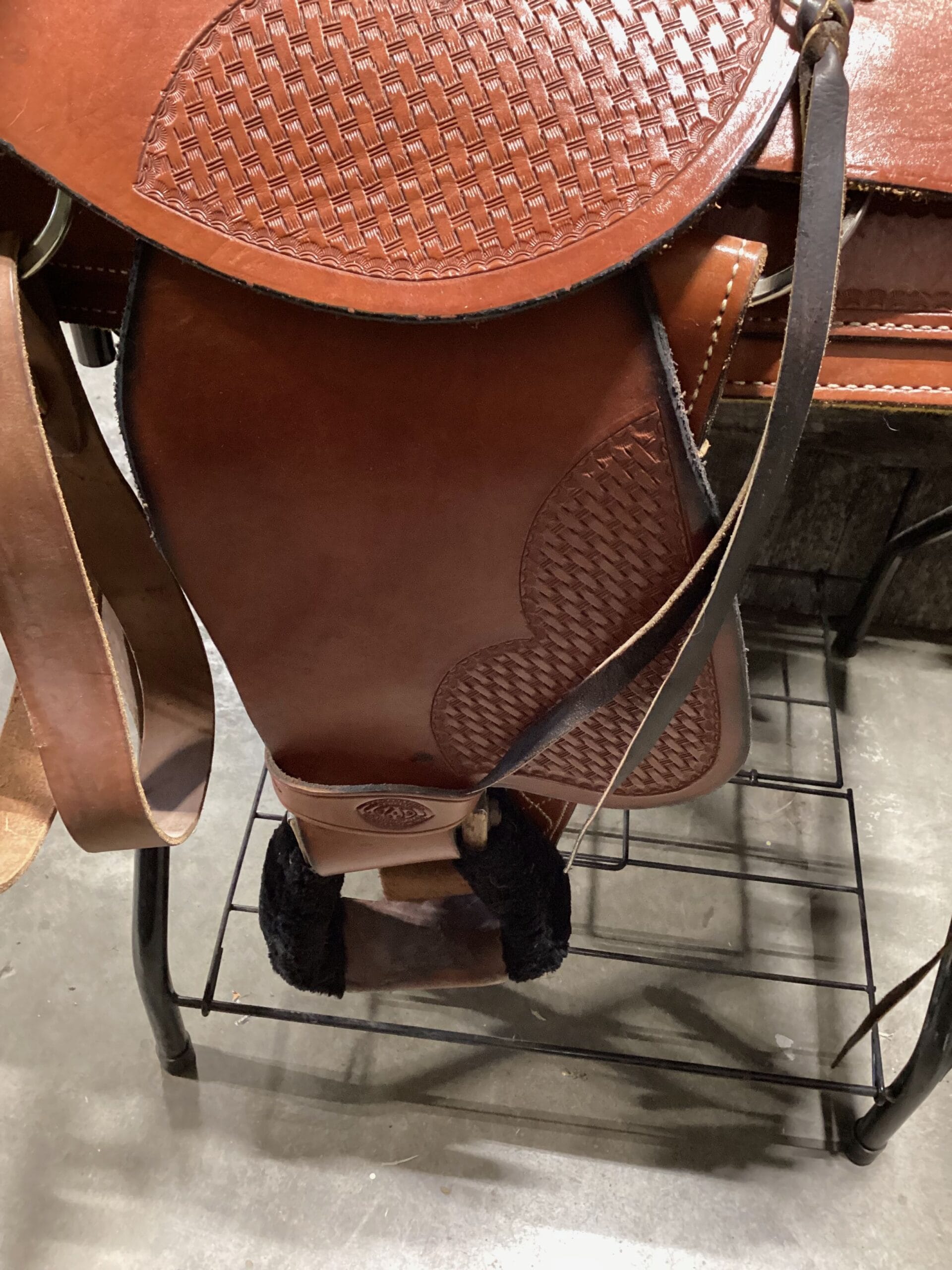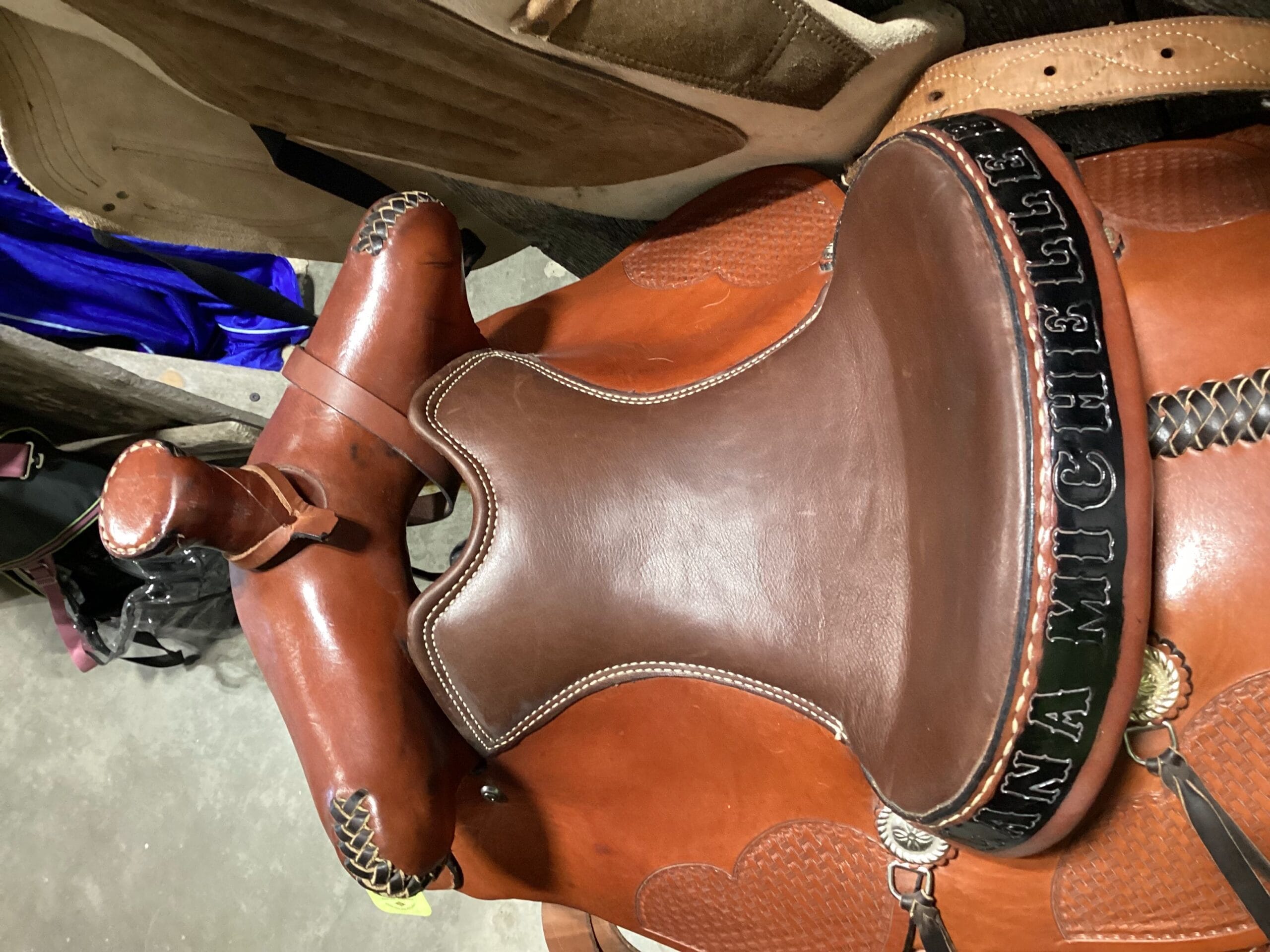 Western Saddle Trophy Seat 14.5″ Gullet 7″ Skirt 26″ Back Cinch & Billets included has been chewed see Pictures