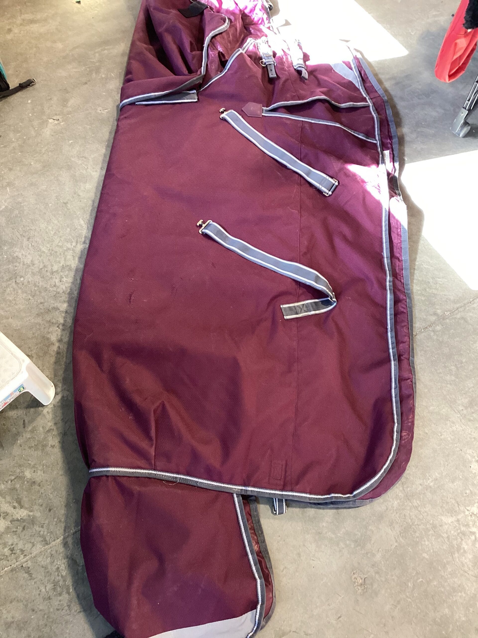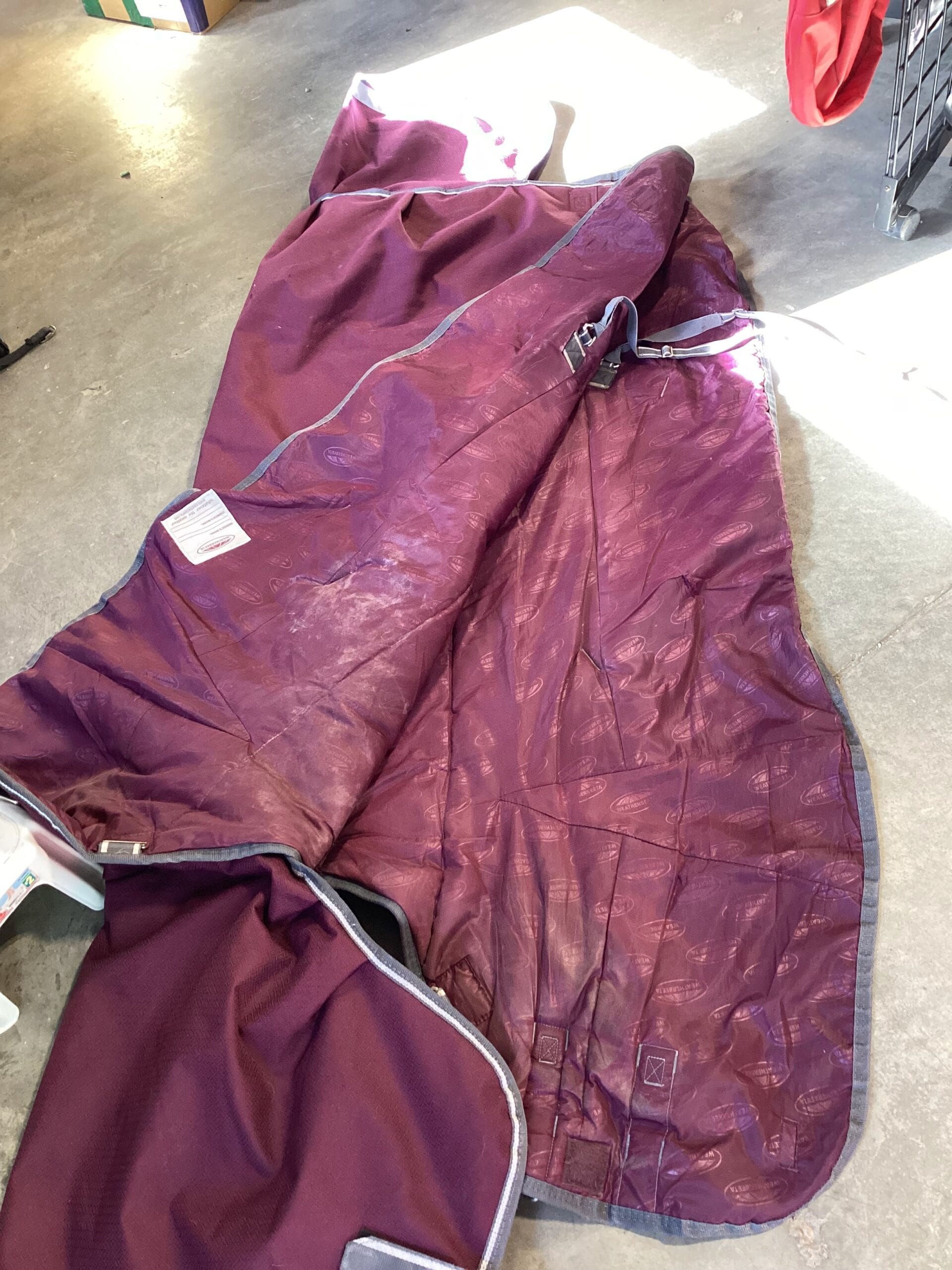 Winter Coat WeatherBeeta Burgundy 69″ 360 G fill A few Snags on outside & Fleece at Wither is coming apart Inside is like new Includes Neck